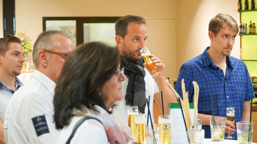 Zu den einzelnen Gängen des 5-Gang-Menüs servierte Diplom-Biersommelier Christoph Diem, zum Erstaunen der Gäste, das jeweils passende Bier. Diese Harmonie von Speisen und Bieren sorgte sichtlich für Begeisterung.