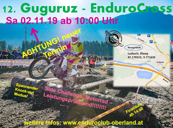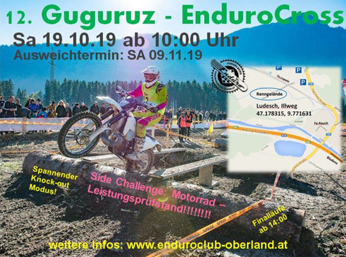 Am 19.10.2010 geht das bereits 12te Guguruz EnduroCross in die nächste Runde! An alle Fahrer die Dabei sein möchten: Schnell anmelden unter www.enduroclub-oberland.at um einen der 60 Startplätze zu ergattern! First come, first serve…