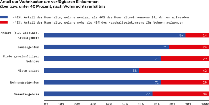 Im Durchschnitt geben Vorarlberger Haushalte laut Umfrage rund ein Drittel ihres Einkommens fürs Wohnen aus – ein Wert, der sich trotz leicht sinkender Inflation kaum verändert hat. Besonders stark betroffen sind Haushalte mit niedrigem Einkommen, bei denen die Wohnkostenquote bei rund 44 Prozent liegt. Im privaten Mietsegment beträgt sie im Schnitt 38 Prozent.