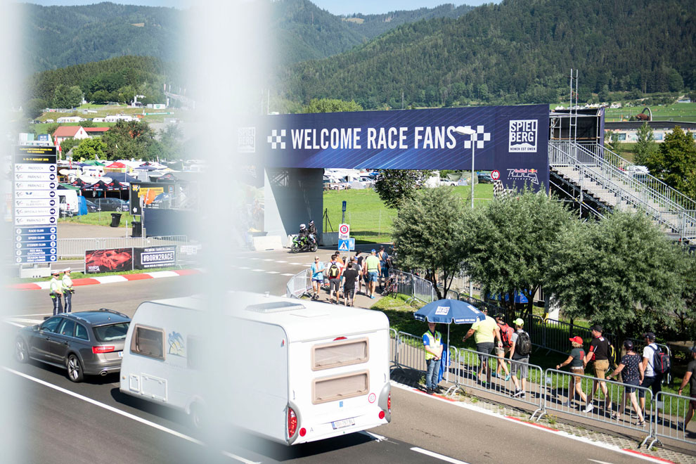 Nur wenige Gehminuten vom Red Bull Ring entfernt befinden sich mehrere Campingplätze. MotoGP-Fans sind dort immer hautnah am Geschehen und in ein paar Schritten an der Rennstrecke. Wer bereits den Mittwoch oder den Donnerstag als Tag der Anreise wählt, kommt problemlos ans Ziel. Für eine möglichst optimale Anreiseverteilung werden Camper am Donnerstag auf der S36 Murtal Schnellstraße mittels LED-Hinweisen geführt. Für Camping „Pink“, „Grün“, „Lila“, „Gelb“ und „Orange“ ist die Ausfahrt Knittelfeld West ideal. „Blau“ und „Rot“ sollten bei Zeltweg West abfahren. Die Zufahrt für Camper ist am Mittwoch und Donnerstag den gesamten Tag möglich. Am Freitag und Samstag ist mit erhöhtem Verkehrsaufkommen zu rechnen, daher wird eine Anreise bis 9:00 Uhr dringend empfohlen. Die Abreise für Camper ist am Sonntag ab 20:00 Uhr möglich.
