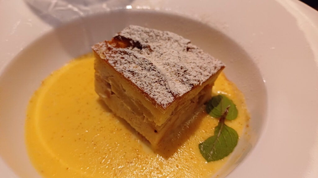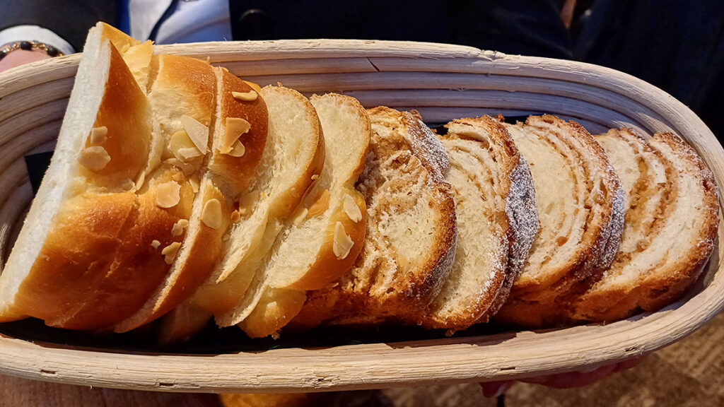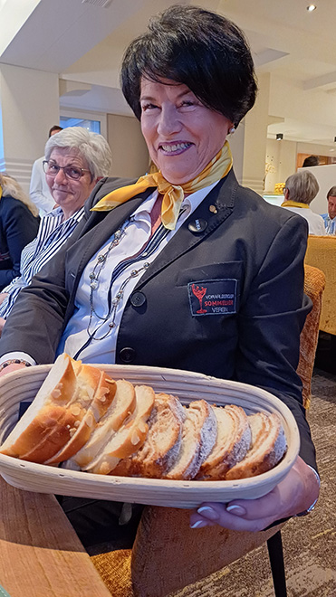 Zwei wunderbare Rieslinge mit Duft, Volumen, Kraft, Körper und langem Aroma, wo sich wieder jeder Genießer seinen Favoriten suchte. Zuletzt zeigte auch noch der Sauvignon Blanc 2023 seine Feinheit, Würze und Klasse – gerade zum Holzofenbrot oder auch zum Lecherlaib in bester Harmonie. Der „süße Ausklang“ mit Butterzopf und Nussstrudel war sehr willkommen für die Freunde von Süßspeisen – herrlich flaumig, mollig und gaumenfreundlich.Doch gab es zu aller Überraschung noch eine süße Spezialität – „Schiterhüfle“ – einer den Gaumen verwöhnender Scheiterhaufen von selten hochwertiger Qualität.