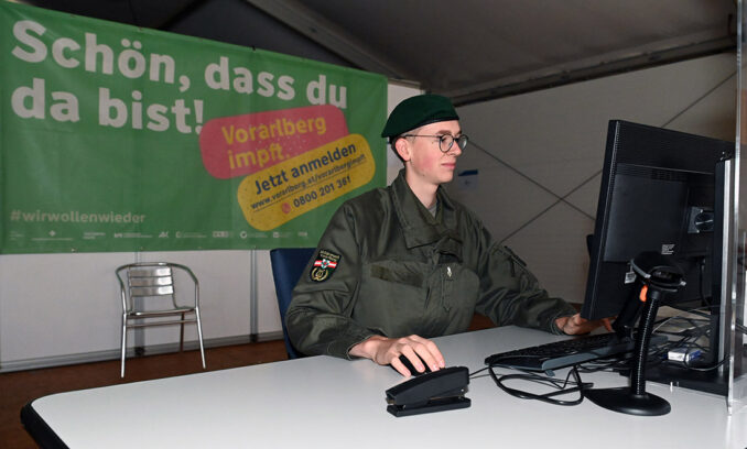 Dazu stellt das Militärkommando Vorarlberg in Bregenz täglich bis zu 40 Soldaten und Zivilbedienstete in zwei Schichten ab und betreibt das Impfzentrum von Mo. 15. November bis Fr. 19. November täglich von 09:00 bis 22:00 Uhr und Sa. 20. November bis So. 21. November jeweils von 09:00 bis 18:00 Uhr.