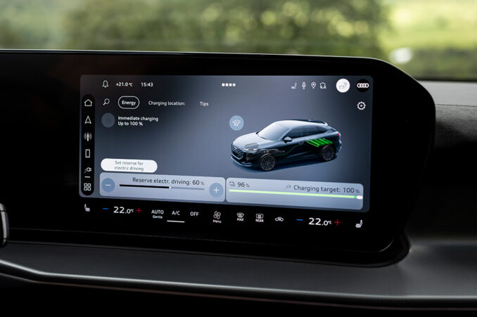 Auf der dreispurigen Autobahn übernimmt der adaptive Fahrassistent plus das Kommando: Er beschleunigt, bremst, hält Spur und Tempo – und sorgt so für ein entspanntes, komfortables Fahrerlebnis. Selbst beim Spurwechsel assistiert er. Während das System uns entlastet, nutzen wir den lernfähigen Sprachbegleiter, den Audi assistant. Mit wenigen Worten regeln wir die Klimatisierung, steuern das Infotainment und erhalten auf Wunsch Informationen entlang der Strecke. „Wo befindet sich die nächste Tankstelle?“ – eine kurze Frage, eine schnelle Antwort. Der Audi assistant schlägt eine Route vor, wir folgen und sind bereit für die nächste Etappe unseres Roadtrips.