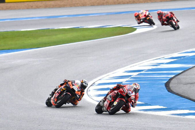 Nur zwei Punkte Vorsprung nimmt Fabio Quartararo nach der fesselnden Regenschlacht von Thailand auf Francesco Bagnaia nach Australien mit, weitere 18 Zähler dahinter lauert Aleix Espargaró. ServusTV-Experte Alex Hofmann: „In der WM ist alles wieder auf Null gestellt. Für Teams und Zuschauer wird es noch super spannend.“