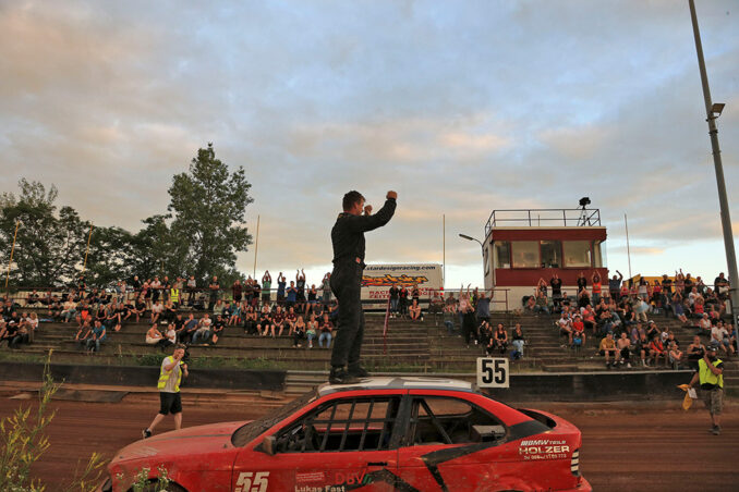Auf zum letzten Gefecht hieß es heute für die Protagonisten des Stockcar Racing Cups auf der Sandbahn in Natschbach-Loipersbach. Und ein Gefecht wurde der siebente und letzte Saisonrenntag tatsächlich, hauptsächlich in der Klasse der Saloon Cars, wo sich noch drei Piloten Chancen auf den Titel ausrechnen durften. Kein Wunder also, dass der Fokus der 900 Zuschauer, die bei prächtigem Spätsommerwetter in die Rennarena gekommen waren, diesmal vorwiegend auf den Saloon Cars lag.