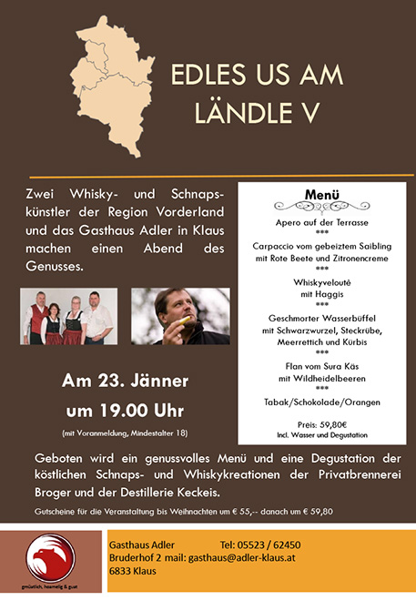 Am 23. Jänner im Gasthaus Adler in Klaus