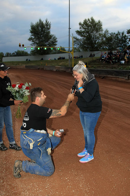 Von Liebeserklärung bis Spendenvermehrung Garniert wurde der sportliche Nachmittag mit zwei tollen Aktionen. Zum einen nutzte der 22-jährige Saloon-Car-Pilot Marcel Burghart aus Mürzzuschlag die Gunst der Stunde, um ausgerechnet nach einem wilden Überschlag im A-Finale seiner Freundin Claudia um punkt 18.27 Uhr einen öffentlichen wie hochoffiziellen Heiratsantrag zu machen. Weil die Braut in spe darüber genauso euphorisch jubelte wie die 500 anwesenden Zuschauer, wünschen wir dem zukünftigen Paar auch von dieser Stelle aus alles Gute!Eine großartige Aktion, die den Zusammenhalt der Stockcar-Familie in Österreich dokumentiert, bescherte der 16 Jahre jungen Larissa Slaby aus Wörth bei Gloggnitz Hilfe in ihrem Schicksal. Larissa fuhr 2018 und 2019 noch selber in der Jugendklasse, ehe sie die Diagnose MS bekam und nunmehr im Rollstuhl sitzt. Über Initiative von Gerald Koloc (Stockcar Racing), Günter Lang (Big Four) und Manuel Weninger (CT 161 Puchberg) wurde eine Spendenaktion gestartet, die noch nicht zu Ende ist, aber Larissa Slaby bislang eine zwischenzeitliche Summe von 10.500 Euro garantiert. Der Scheck wurde heute überreicht. Das Geld will das tapfere Mädchen in die Anschaffung eines behindertengerechten Fahrzeugs, das mit rund 40.000 Euro veranschlagt ist, investieren. Gerald Koloc: „Erfreulicherweise haben sich noch viele andere Firmen bei uns gemeldet, die Larissa auf irgendeine Art unterstützen möchten. Wir freuen uns, dass wir so mithelfen können, ihr das Leben ein wenig zu erleichtern.“