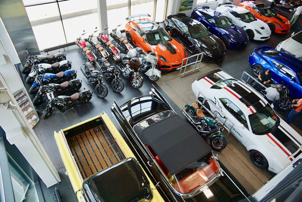 Motorräder wecken in Karl Geiger genau die Leidenschaft, mit der er bereits seit vier Jahrzehnten äußerst erfolgreich das Autogeschäft betreibt. Vor allem gilt dies für die legendäre US-Marke Indian als Teil von Polaris Industries: „Mit Gründungsjahr 1901 ist das die älteste Motorradmarke der USA und eine der ältesten der Welt. Die Motoren wurden in der Schweiz entwickelt und laufen präzise und verlässlich wie ein Uhrwerk. Das Design ist klassisch, gleichzeitig ist die Technik hochmodern. Es macht unheimlich Spaß, auf Indian Bikes den wirklichen ‚American Way to Ride‘ zu genießen.“