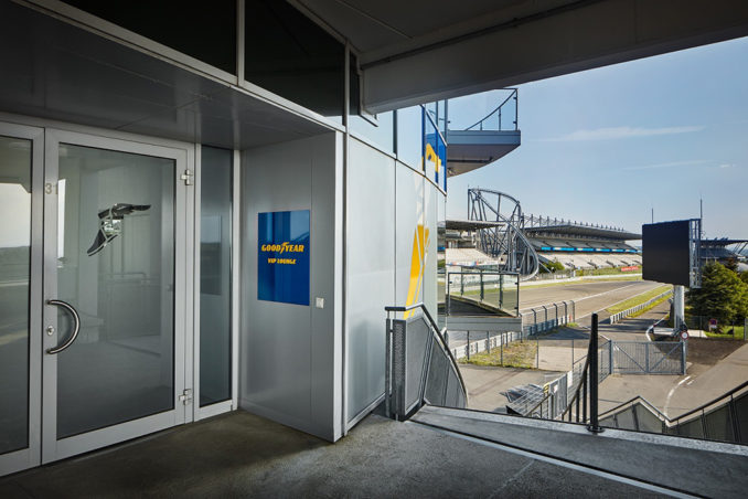 2020 ist Goodyear wieder in den deutschen Motorsport eingestiegen und knüpft somit an eine reiche Rennsport-Historie an. Auf der Nürburgring-Nordschleife rüstet Goodyear zahlreiche Teams in der Nürburgring Langstrecken-Serie und beim 24h-Rennen aus. Diese Rückkehr in das Motorsportgeschehen lieferte auch den Anlass, die VIP-Lounge am Nürburgring im Look & Feel der Reifenmarke erstrahlen zu lassen. Die exklusive Lounge am Ende der Boxengasse bietet einen Rund-um-Blick auf die Grand-Prix-Strecke direkt über der Start-Zielgerade. Die attraktive Innenausstattung schafft eine angenehme Wohnzimmeratmosphäre mit einer erhöhten Plattform, einer Empfangstheke, einer Bar und einem Buffet. Modernste Präsentationstechnik mit Bildschirmen und Projektoren bietet die Möglichkeit von Produktpräsentationen, Schulungen, Expertentalks oder ähnlichen Veranstaltungen.