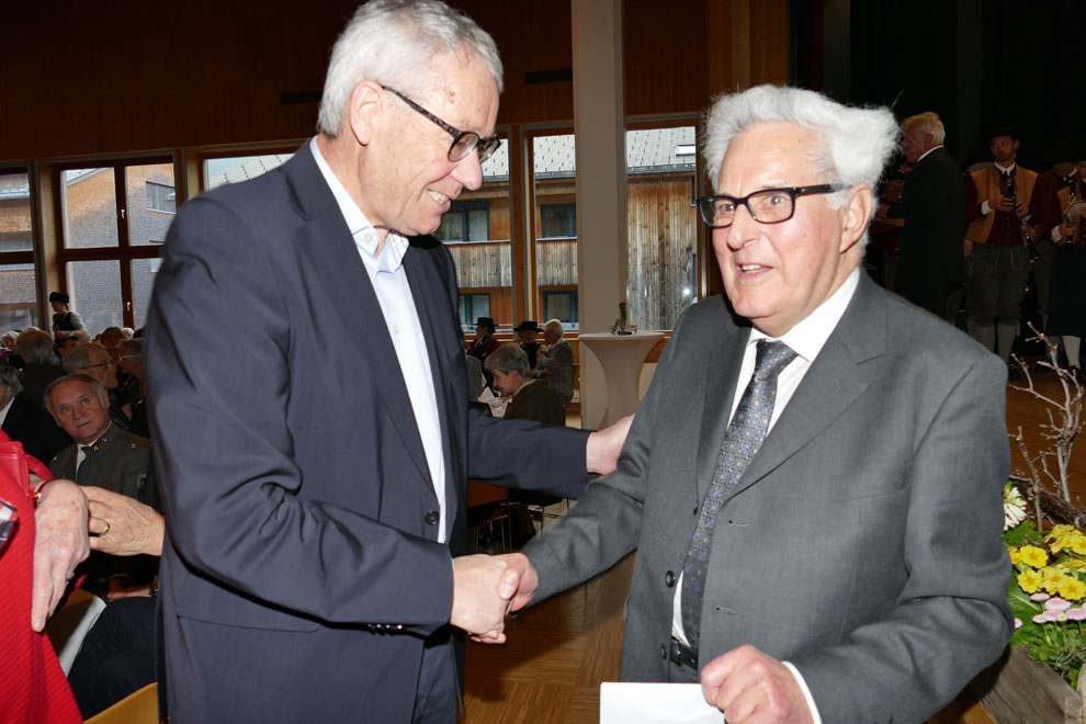 Gottfried Feurstein, eine Legende der österreichischen Politik, feierte im Rathaussaal in Andelsbuch seinen 80. Geburtstag. Die Feierlichkeiten wurden vom Schützenbund mit neun Ehrensalutschüssen eröffnet, zahlreichen Politiker und Wegbegleiter würdigten Gottfried’s Engagement für die Menschen im Ländle. Unter den Gratulanten waren Landeshauptmann Markus Wallner, Karlheinz Rüdisser, Erich Schwärzler, Roland Frühstück, Altbischof Elmar, Bischof Benno Elbs, der Andelbucher Bürgermeister Bernhard Greber, der Götzner Altbürgermeister Werner Huber, Gerold Riedmann uvm. Reinhard Willi führte gekonnt durch den Abend, der vom Andelsbucher Musikverein musiklisch untermalt wurde.