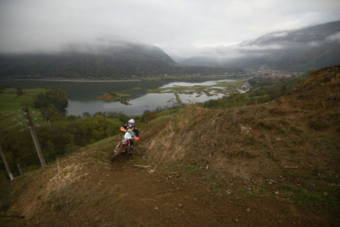 Eine Seenlandschaft in herbstlichen Farben war am Mittwoch die Kulisse für die erste Offroad-Etappe der „Red Bull Romaniacs“. In dieser spektakulären Landschaft hat Altmeister Graham Jarvis ein weiteres Mal gezeigt, dass er auch im Herbst seiner Karriere zu den absoluten Sieganwärtern zählt.