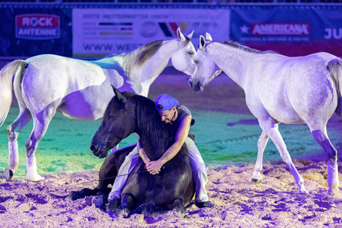 Von Anfang an war die Americana ein Wegbereiter des Westernreitsports und für dessen Förderung hatte sich das Showmanagement auch in diesem Jahr einige wichtige Details einfallen lassen. So wurde das Geschehen in der Arena aus vier Kamerapositionen aufgezeichnet und auf die fünf großen Bildschirme übertragen, so dass jeder Zuschauer zu jeder Zeit das Geschehen bestens verfolgen konnte. Hinzu kamen dynamische Slow Motion Aufnahmen, so wie man sie aus anderen Sportarten kennt. Verbunden mit den herausragenden sportlichen Leistungen in den diversen Disziplinen hätte man sich keine bessere Werbung für fürs Westernreiten wünschen können. Sprecher-Legende Darren Moore aus Texas, der die Americana auch dieses Jahr wieder zusammen mit Boris Kook begleitete – im Cutting sogar direkt vom Pferd aus-, brachte es auf den Punkt: „Die Americana ist viel mehr als ein Turnier – sie ist ein Event. Wer hier startet, reitet nicht für sich, sondern für unseren ‚Brand‘, den Western Way of Life.“