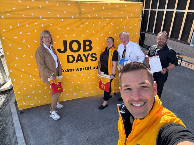 Anlässlich der baldigen (Wieder-)Eröffnung des neu gebauten McDonald’s Restaurants in Bürs luden Franchisenehmer Loek Versluis und Marko Krapec, Head of Employee Experience bei McDonald’s Österreich, am 6. und 7. Juni zu den McDonald’s Job Days. Das Format war ein voller Erfolg: Die engagierten Teilnehmer:innen nutzten die Möglichkeit, sich über Positionen im Restaurant zu informieren und sich auch gleich direkt vor Ort zu bewerben. Im persönlichen Dialog konnten Interessierte dabei Fragen an den Franchisenehmer stellen und potenzielle zukünftige Arbeitskolleg:innen kennenlernen.