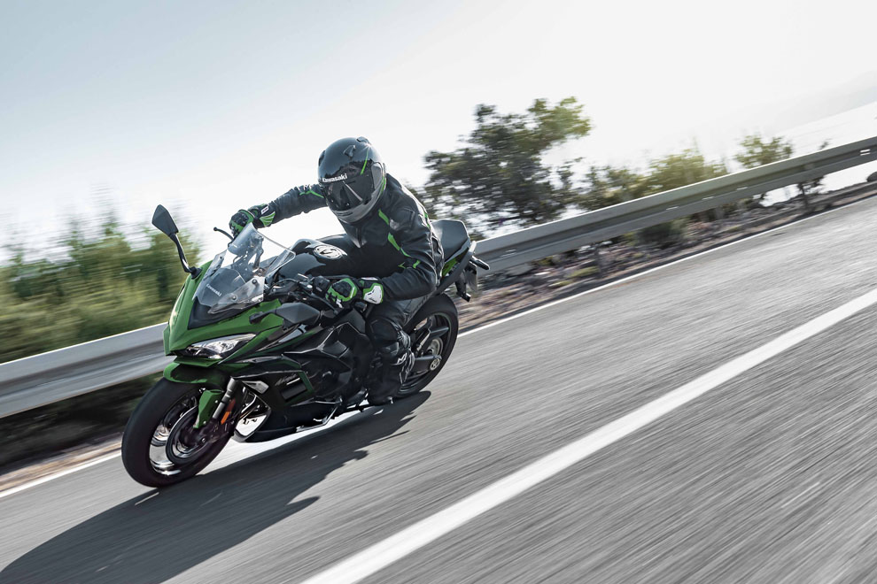 Die elektronischen Fahrhilfen umfassen die Traktionskontrolle (KTRC), das Kurvenmanagement System (KCMF) und das intelligente ABS (KIBS). Eingestellt werden die Systeme anhand der vier Fahrmodi Sport, Road, Rain und Rider. Der serienmäßige Quick-Shifter (Up/ Down) sowie die 142 PS garantieren rasanten Fahrspaß.