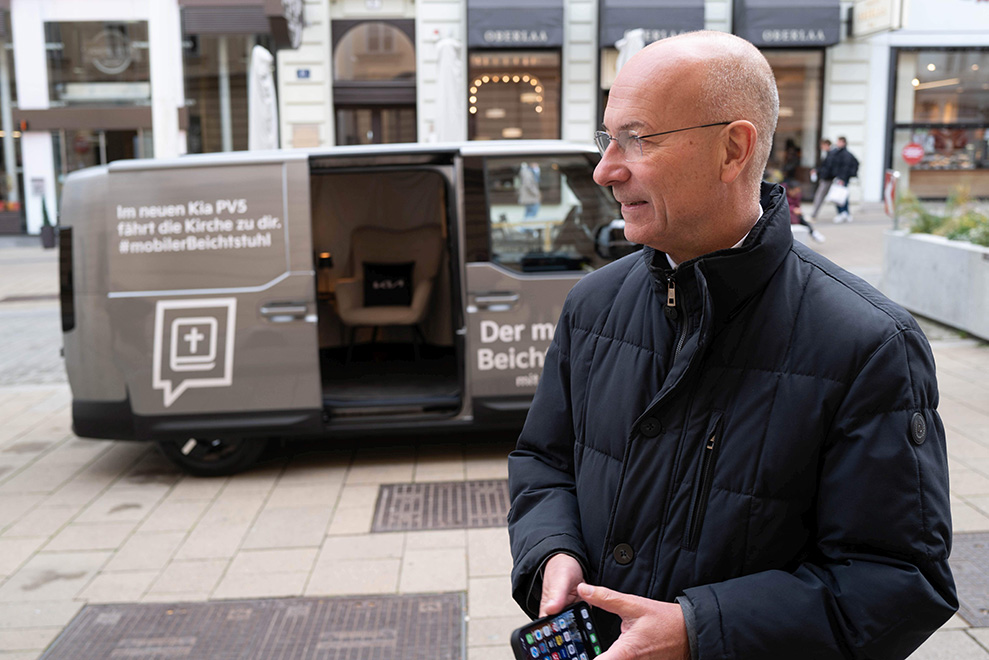 Kirche fährt elektrisch – Dompfarrer Toni Faber im neuen Kia PV5 unterwegs
