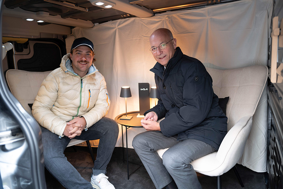 Der Kia PV5 wurde so zum Symbol für Bewegung, Raum und Begegnung – elektrisch, modern und mitten im Leben. Durch die platzsparend im Unterboden verbauten Batterien bleibt nicht nur genug Raum, sondern auch ein niedriger Einstieg, weniger Barrieren für den Umstieg zur Elektromobilität. Toni Faber dazu: „ich selbst stehe auch an der Umstellung von Verbrenner zum Elektroauto, das ist eine notwendige Entwicklung, um auch in Zukunft die persönliche Mobilität zu sichern.