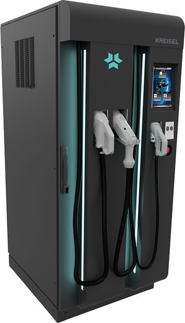 Möglich wird die besonders hohe Ladeleistung dank des integrierten Pufferspeichers, der Energie langsam speichert und im Bedarfsfall extrem schnell von Batterie zu Batterie (DC/CD) abgibt. Die Schnellladestationen von Kreisel ermöglichen auf diese Weise bis zu 240 kW und verfügen über einen Speicher von 104 kWh. Sie erlauben es, vor Ort nachhaltig Energie zu gewinnen, zu speichern und wieder abzugeben. Geladen wird der Kreisel Power Charger zum Beispiel über eine Photovoltaik-Anlage oder auch rascher durch den 44 kW-Netzanschluss.