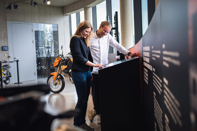 Ein exklusiver Blick in die Erfolgsgeschichte zeigt, wie sich KTM in den letzten 30 Jahren nach der Übernahme durch Stefan Pierer zu Europas größtem Zweiradhersteller entwickelt hat und welche Zukunftsvisionen – mit dem klaren Ziel, auch in der Welt der Elektromobilität eine führende Rolle zu spielen – das Unternehmen verfolgt. Als einer der innovativsten Motorradhersteller ist KTM auch ein renommierter Arbeitgeber und präsentiert in der Ausstellung die Einblicke in die Arbeitswelt sowie die Vision des Arbeitsgebers von morgen.
