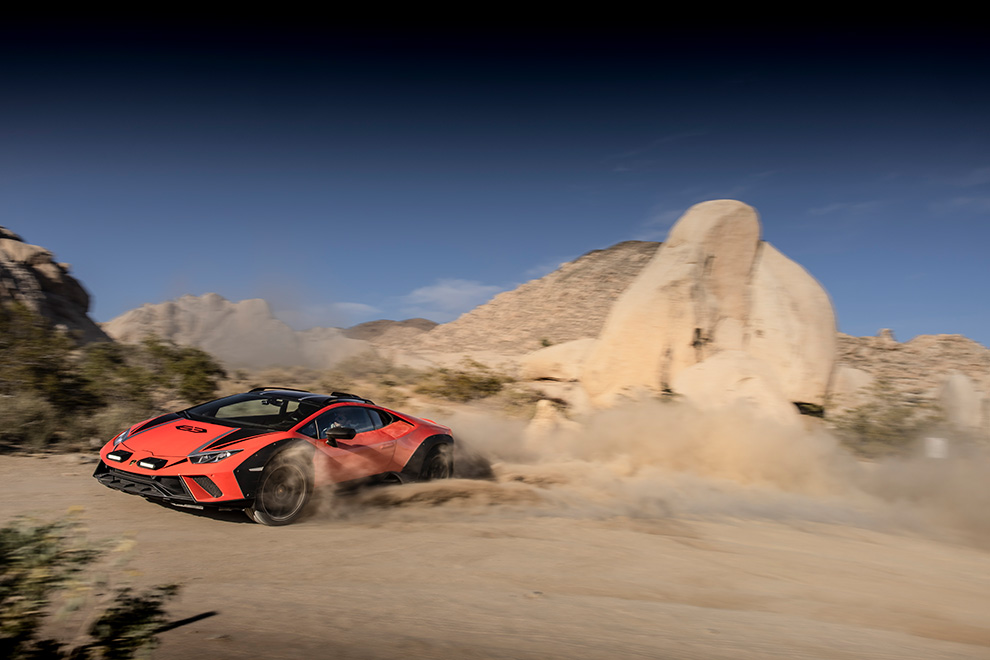 Kalifornien bietet die perfekte Kulisse, um die Qualitäten des Multitalents Huracán Sterrato auf Asphalt und Sand auszukosten. Auf dem Weg durch die beeindruckenden Landschaften des Joshua-Tree-Nationalparks bietet der abenteuerlustige Supersportwagen jede Menge Fahrkomfort auf der Straße und zeigt auf unbefestigtem Gelände, dass ein Draufgänger in ihm steckt.