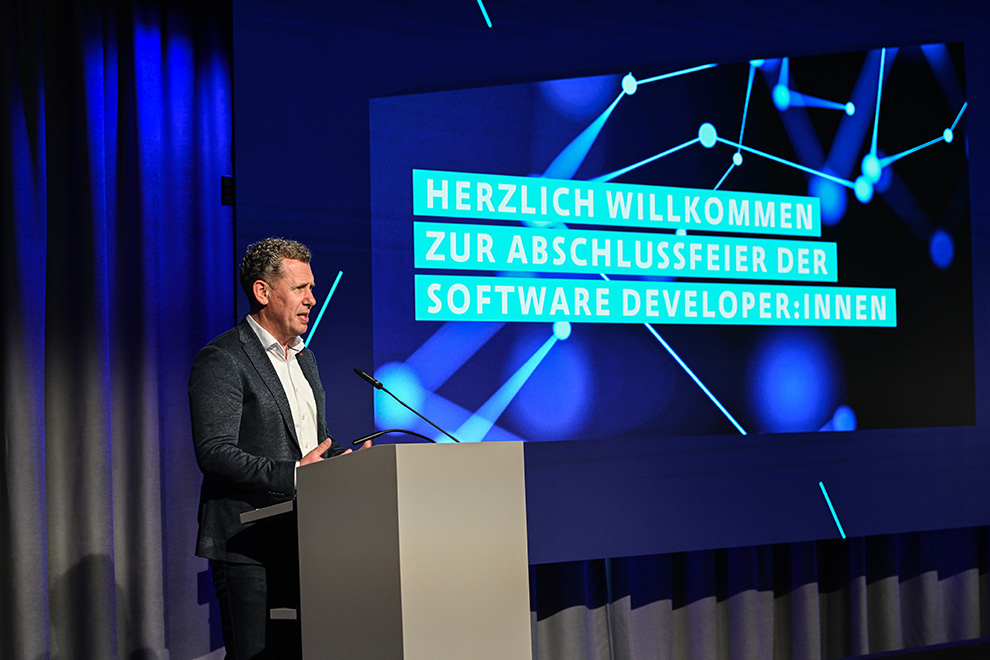 Die Ausbildungsmodule wurden vom Digital Campus Vorarlberg an die Anforderungen der Unternehmen angepasst. Unter anderem wurde etwa die Programmiersprache von Java auf C# umgestellt. „Als Software Entwickler:in muss man sich laufend neuen Gegebenheiten anpassen und neue Lösungen finden“, weiß Gyula Horvath, Produktmanager & Trainer am Digital Campus Vorarlberg. „Wir sind stolz darauf, die Programmierer:innen von Morgen zu begleiten.“