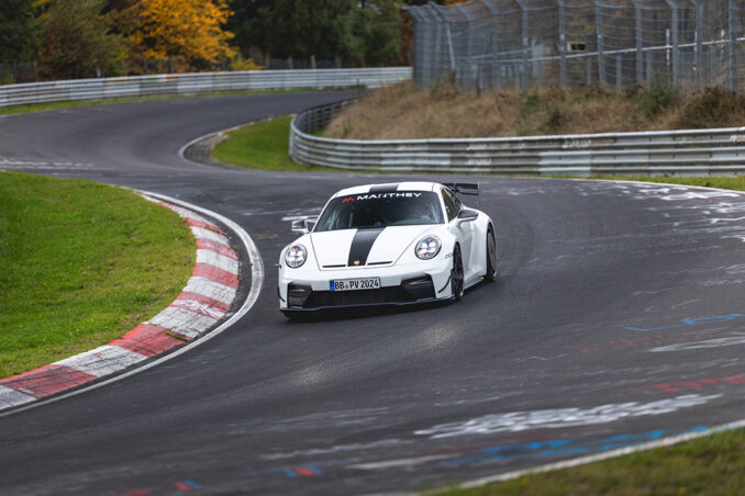 Auf der Nürburgring Nordschleife, bei Porsche traditionell das Prüflabor für Sportwagen, kann der 911 GT3 mit Manthey Kit seine Trümpfe voll ausspielen. Mit dem amtierenden DTM-Champion Ayhancan Güven am Steuer umrundete der modifizierte GT-Sportler den 20,8 Kilometer langen Kurs in der Eifel bei nicht idealen Bedingungen in 6:52,981 Minuten – und damit bereits 2,76 Sekunden schneller als die Vorgängergeneration (992.1) des 911 GT3 mit Manthey Kit. Beide Fahrzeuge waren mit den optional erhältlichen Reifen des Typs Michelin Pilot Sport Cup 2 R ausgerüstet. Die Rundenzeit wurde von einem vor Ort anwesenden Notar beglaubigt.