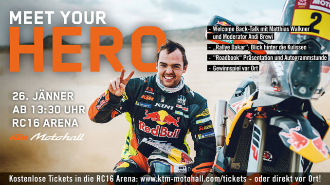 Empfangen wird der Gesamtfünfte der Rallye Dakar 2020 am Sonntag, 26. Jänner um 14:00 Uhr am Vorplatz der KTM Motohall. Einen exklusiven Blick hinter die Kulissen gewährt der Kuchler Matthias Walkner beim live Talk in der RC16 Arena der KTM Motohall.
