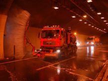 Bei Tunnelbränden sind Hochdrucksprühnebelanlagen die vollautomatische erste Front. 90 Minuten kann die Anlage feinsten Wassernebel im jeweils betroffenen Tunnelabschnitt einsprühen. Dadurch wird die Temperatur im Falle eines Brandes in Schach gehalten – mehr Schutz für Mensch und Bauwerk ist die Folge. Die eigentlichen Löscharbeiten erledigen in bewährter Manier die Feuerwehren. Im Lieferinger Tunnel (A 1 Westautobahn), Walder Tunnel (A 9 Pyhrnautobahn) oder Arlbergtunnel (S 16 Arlberg Schnellstraße) ist das bereits umgesetzt. Auch im Citytunnel bei Bregenz (A 14 Rheintal/Walgau Autobahn) ist diese neue Sicherheitstechnologie bereits im Einsatz.