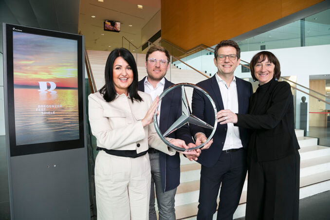 Mercedes-Benz Österreich und die Bregenzer Festspiele begeben sich ab 2024 gemeinsam auf die Bühne: Der Stern wird Partner des Opern-, Musik- und Theaterfestivals in der Vorarlberger Landeshauptstadt. Das kulturelle Engagement der Premiummarke umfasst sowohl die Rolle als Hauptsponsor, als auch jene des exklusiven Mobilitätspartners. Letztere schließt die Bereitstellung einer exklusiven Fahrzeugflotte für das Sommerfestival ein: 4 Ganzjahresfahrzeuge in Form einer C-Klasse als Plug-In-Hybrid, einem EQB 350 4MATIC , einem EQA 350 4MATIC sowie einem EQE SUV 500 ) sowie 2 Shuttlefahrzeuge während der Festspielsaison sorgen für Mobilität der Künstler:innen und Mitarbeitenden.