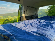 • Die serienmäßige Betteinheit bietet mit einer zwei Meter mal 1,15 Meter großen Liegefläche Platz für zwei Personen. Ein punktelastisches Tellerfedersystem und eine mit zehn Zentimetern extra dicke Matratze sorgen für ein ergonomisches Liegen bis in die Randbereiche. Zur Nutzung wird das Bettgestell komfortabel nach vorne ausgezogen und die Matratze ausgeklappt. Während der Fahrt befindet sich das Gestell mit zusammengefalteter Matratze im Kofferraum. Die Fondsitze können dann uneingeschränkt genutzt werden. Zum Serienumfang für hohen Schlafkomfort gehören außerdem Verdunklungselemente für alle Fensterscheiben und ein Belüftungsgitter mit Insektenschutz, das zwischen Scheiben und Rahmen geklemmt wird. Ebenfalls serienmäßig sind beidseitig zwei Fenstertaschen zwischen C- und D-Säule für kleinere Utensilien.