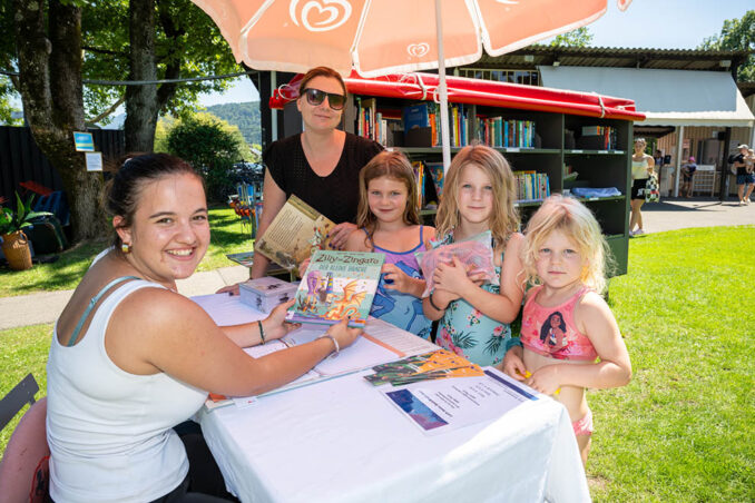 Die mobile Bibliothek „Bade-Buch“ schlug ihre Zelte zu Beginn der Sommerferien in den Freibädern VAL BLU in Bludenz und im Erlebnis-Waldbad Feldkirch auf. Schon seit dreizehn Jahren (in Bludenz seit 2018) können Wasserratten und Sonnenhungrige dort Bücher, Zeitungen und in Feldkirch auch Spiele ausleihen. Angefangen hat alles in Feldkirch mit ein paar Kisten voller Bücher und Zeitungen, seit 2016 steht ein gut ausgestatteter kleiner Bibliotheks-Wagen für die Besucher:innen parat.