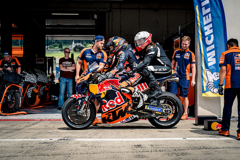 Der Red Bull KTM RC16 Two-Seater ist ein echter Prototyp der Motorrad-Weltmeisterschaft, adaptiert mit Haltegriffen und Fußrasten für einen Beifahrer. Bei dieser Maschine handelt es sich um ein vollwertiges Top-Performance-Bike. Durch den zweiten Sitzplatz ist es einem Beifahrer möglich, den Adrenalin-Kick mit mehr als 280 PS und einer Höchstgeschwindigkeit von 340 km/h am eigenen Leib mitzuerleben.