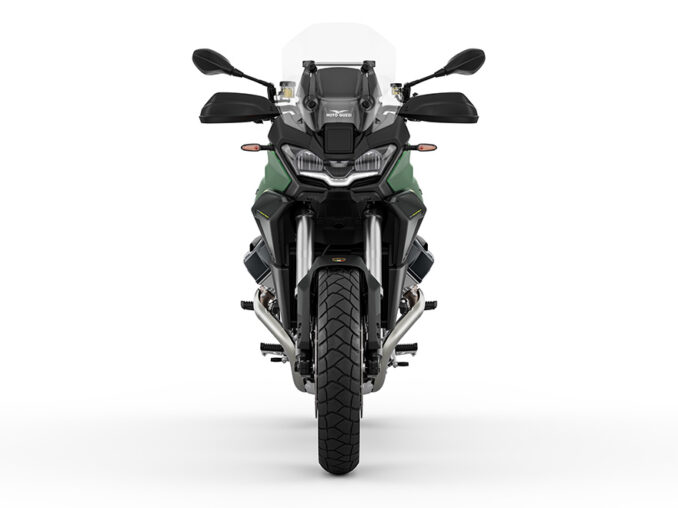 Die Moto Guzzi Stelvio steht seit jeher für Abenteuer ohne Grenzen: ein kraftvolles On-Off-Road-Motorrad, gebaut auf der modernsten technischen Plattform der Marke. Ihr kompakter 90Åã-V-Twin Motor leistet 115 PS und bietet dank Kardanantrieb, beeindruckendem Fahrwerk und umfangreichen elektronischen Fahrassistenzsystemen höchste Performance und Komfort – inklusive dem von Piaggio Fast Forward entwickelten PFF-System mit innovativer Radartechnolgie, das neben der Stelvio auch in der Moto Guzzi V100 S zur Anwendung kommt. Mit ihren markanten Linien, dem LED-Tagfahrlicht in Form des Moto-Guzzi-Adlers und hochwertig verarbeiteten Oberflächen bleibt die Stelvio ein Motorrad für anspruchsvolle Abenteurer, die Technik, Stil und Charakter suchen.