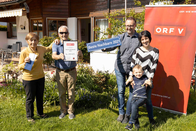 Sie gießen im Urlaub die Blumen, bringen Frühstück vorbei, wenn man selbst keine Zeit dafür hat, und spielen auch schon mal Großeltern-Ersatz: Im letzten Jahr sicherte sich Familie Kreuzer aus Höchst den Titel „Beste Nachbarn 2021“ des ORF Vorarlberg. Das über 80-jährige Ehepaar war von der jungen Familie Schneider nebenan nominiert worden, für selbstlose Nächstenliebe und herzhaften Einsatz. Der lebende Beweis für gelungenes Zusammenleben, das Generationen überwindet.
