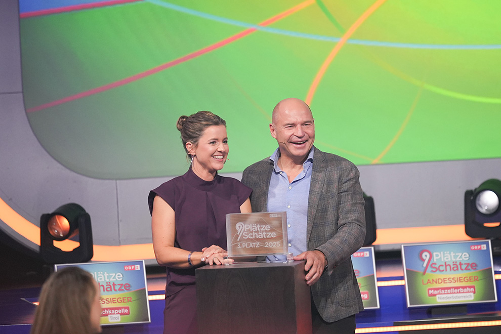 „Vorarlberg heute“-Moderatorin Christiane Schwald-Pösel und der fünffache Gesamtweltcup-Sieger im alpinen Skirennsport Marc Girardelli waren heuer die prominenten Gesichter Vorarlbergs in der Show. ORF-Landesdirektor Markus Klement, der die Live-Show gemeinsam mit einer Delegation aus Gaschurn direkt am Wiener ORF-Mediencampus mitverfolgte, gratuliert allen Beteiligten herzlich und betont: „Wir sind sehr stolz, dass Vorarlberg heuer im Rennen um den ‚schönsten Platz Österreichs‘ von Jury und Publikum auf den sagenhaften dritten Platz gevotet wurde. Sechs Stockerlplätze in zwölf Jahren zeigen eindrücklich, welch ausgezeichnete Naturjuwele und Wohlfühlorte Vorarlberg zu bieten hat.“