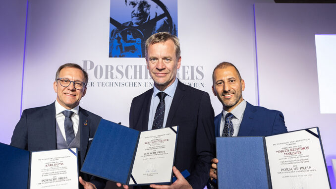 Der 23. „Porsche-Preis der Technischen Universität Wien“ ist für die erste industrielle E-Fuel-Produktion in Chile an Dipl.-Ing. (FH) Karl Dums von der Porsche AG sowie Dipl.-Ing. (FH) Marcos Remedios Marques (vormals Porsche AG, jetzt HIF Global) und Dipl.-Ing. Rolf Schumacher von HIF Global verliehen worden. Mit dem Aufbau der Pilotanlage „Haru Oni“ in der südchilenischen Region Patagonien werden nach Auffassung der Jury des renommierten Automobil-Technikpreises wichtige Grundlagen geschaffen, in den nächsten Jahren E-Fuels in großen Mengen, zu wettbewerbsfähigen Preisen und potenziell nahezu klimaneutral produzieren zu können. Daran haben Dipl.-Ing. (FH) Karl Dums und Dipl.-Ing. (FH) Marcos Remedios Marques als gemeinsame Projektleiter E-Fuels der Dr. Ing. h. c. F. Porsche AG, Stuttgart, und Dipl.-Ing. Rolf Schumacher als Chief Innovation Officer von HIF Global, Berlin, entscheidenden Anteil gehabt.