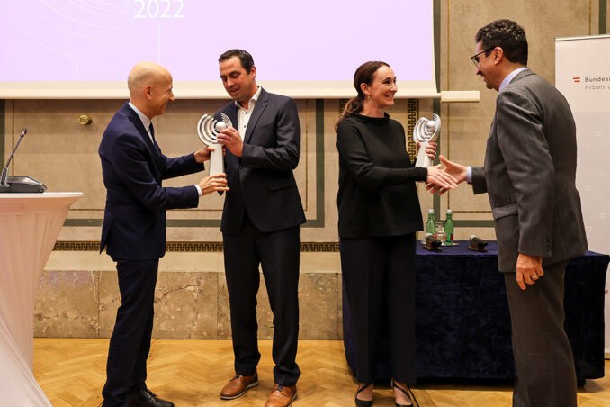 Der diesjährige Preis der Christian Doppler Forschungsgesellschaft geht gleich an zwei Materialforscher:innen: an Sandra Stroj von der FHV und Günther Mayr von der FH Oberösterreich. Arbeits- und Wirtschaftsminister Martin Kocher und CDG-Präsident Martin Gerzabek überreichten den mit insgesamt 40.000 Euro dotierten Preis im Rahmen einer Feier. Minister Kocher gratulierte: „Gratulation an Sandra Stroj und Günther Mayr! Gemeinsam mit ihren Unternehmenspartnern zeigen sie, wie erfolgreich Forschung an Fachhochschulen ist, und wie vielfältig die Anwendungsmöglichkeiten sind. Neues Wissen stärkt den Innovationsstandort Österreich und ist ein Wettbewerbsvorteil im internationalen Vergleich. Die Erfolge der Josef Ressel Zentren zeigen, dass Fachhochschulen die Möglichkeit zum langfristigen Aufbau von Expertise in Interaktion mit Unternehmen hervorragend nutzen.“ Mit dem Preis werden Wissenschaftler:innen ausgezeichnet, die in ihren Josef Ressel Zentren herausragende Arbeit geleistet haben.