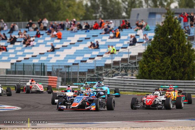 Zweimal gelang es den Piloten von LRT Racing in die Phalanx der Formel 3-Fahrzeuge zu fahren. Hinter Fischer kam der Ungar Zeno Laszlo Kovacs (Kermor Motorsport)auf Rang zwei vor Alexander Fritz, der den zweiten Formel Renault von LRT Racing steuerte. Mitfavoritin Sarene Ziffel schied im ersten Lauf in Runde fünf aus. Im zweiten Head lief es für die Französin richtig gut. Michael Fischer konnte Sie nicht gefährlich werden, doch mit Alexander Fritz gab es ein sehenswertes Duell bis zum Fallen der Zielflagge. Mit einem Vorsprung von 0,655 Sekunden rettete sich Alexander Fritz vor Ziffel über die Ziellinie. Der 5.922 Kilometer lange Slovakiaring bot zur Premiere dem Drexler Formel Cup eine attraktive Bühne. Die schnellste Zeit fuhr übrigens Sandro Zeller. Im zweiten Lauf war er mit 1.55,606 Minuten noch schneller als im Qualifying unterwegs.