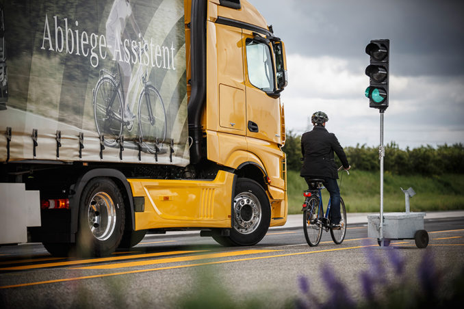 Am Montag startete eine Petition zur verpflichtenden Ausstattung von Lkw mit Abbiege-Assistenten. Jährlich kommen in Österreich durchschnittlich 16 Fußgänger oder Radfahrer bei Unfällen mit Lkw ums Leben. Mercedes-Benz hat schon 2014 den Prototyp des Abbiege-Assistenten vorgestellt. Ausgeliefert wird der Abbiege-Assistent seit Dezember 2016 und ist für die Baureihen Actros, Antos und Arocs sowie für den Econic und Setra Reisebusse verfügbar. Der Abbiege-Assistent von Mercedes-Benz geht in seiner Funktionalität weit über das Angebot des Mitbewerbs hinaus.