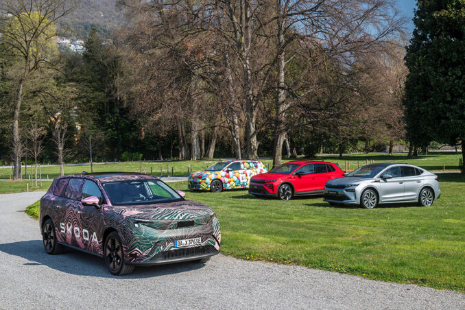Alle Interieur-Varianten sind serienmäßig mit einer Ambientebeleuchtung und einem beheizbaren Multifunktionslenkrad mit Škoda Schriftzug ausgestattet. In der gesamten Modellreihe kommt ein Zwei-Speichen-Lenkrad zum Einsatz, lediglich die Sportline-Version verfügt über ein DreiSpeichen-Lenkrad mit Hands-Off-Erkennung und Schaltwippen für das Rekuperationsbremsen. Ausgewählte Innenausstattungen sind vollständig frei von tierischen Produkten, nachhaltig und enthalten mehr als 50 kg recycelte Materialien. Eine Design Selection mit Echtlederausstattung wird im Laufe dieses Jahres ebenfalls erhältlich sein.