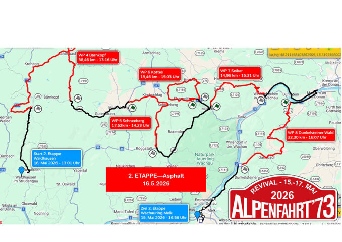 In ca. sieben Wochen fällt in Melk der Startschuss für die dritte Auflage des Alpenfahrt-Revival. Die Vorbereitungen laufen derzeit auf Hochtouren. Die Veranstalter, die Freunde des Driftwinkels, erwarten bis zum Start am 15. Mai 2026 in etwa ein Starterfeld von ca. 40 Teilnehmern.