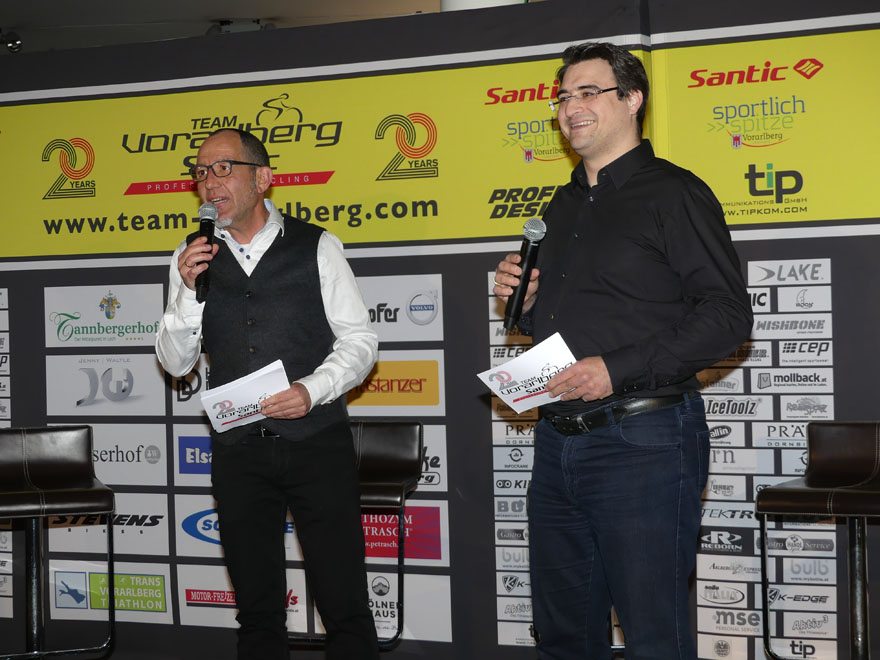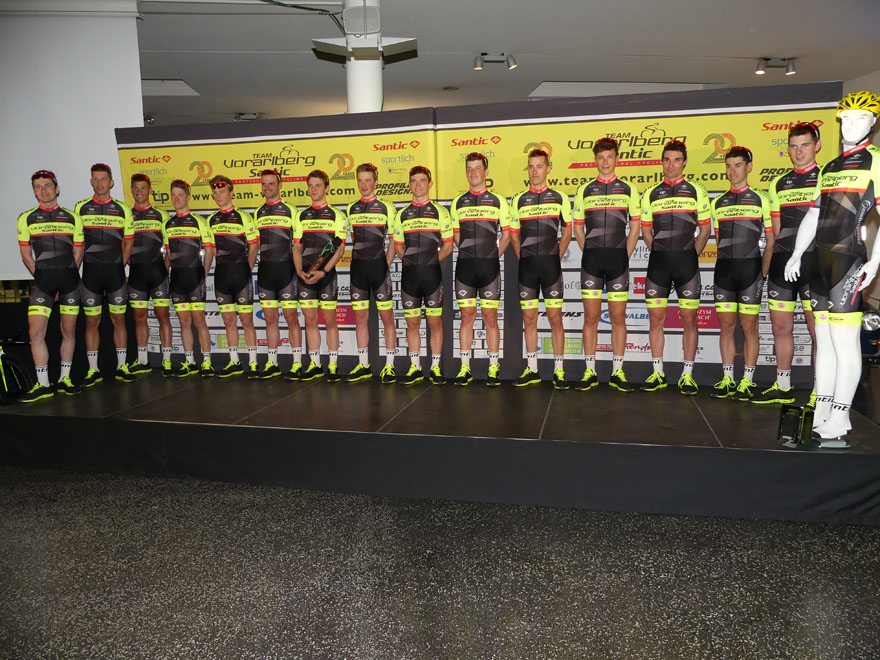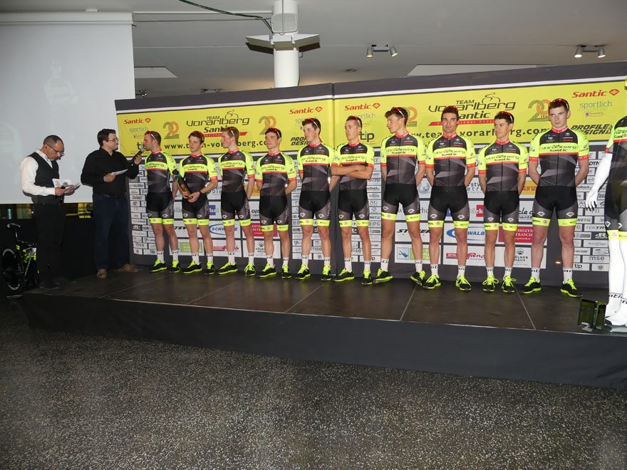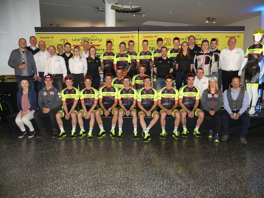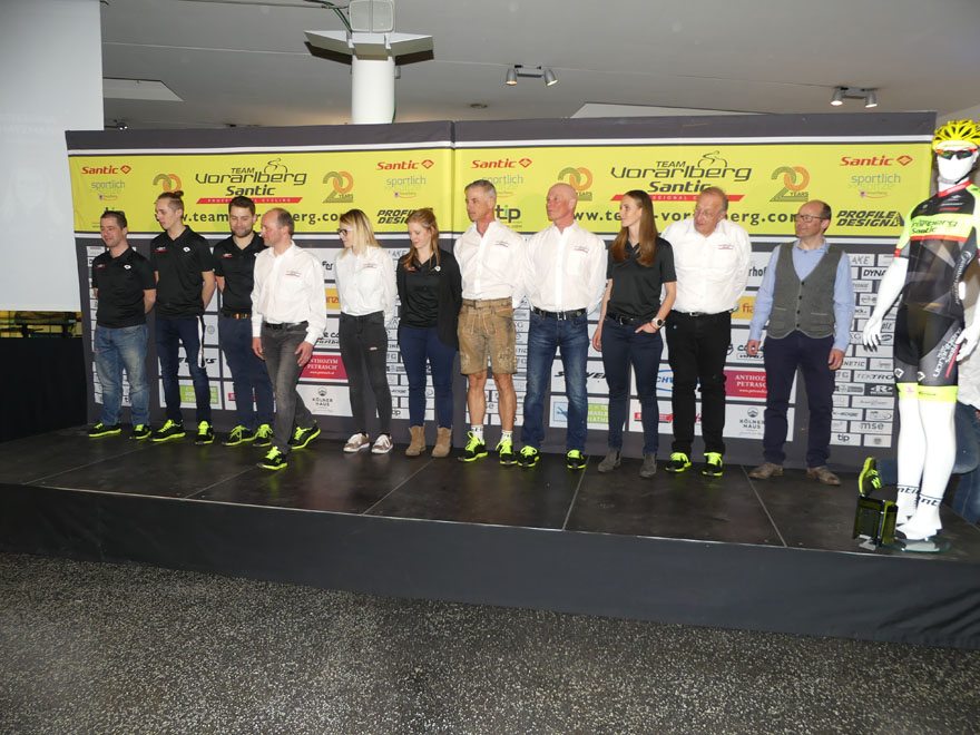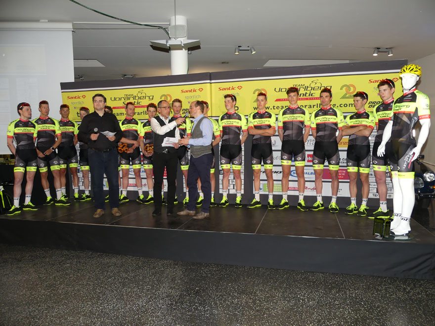 Bei der Team Vorstellung 2018 im Autohaus Volvo Niederhofer in Lauterach, bei dem das Rad Team auch „20 Jahre Team Vorarlberg” feierte, präsentierte das Team Vorarlberg Santic zwei neue Partner.