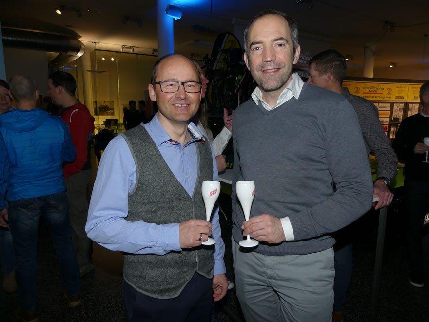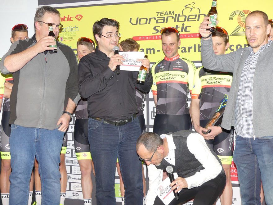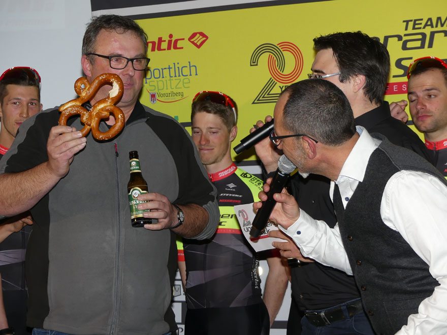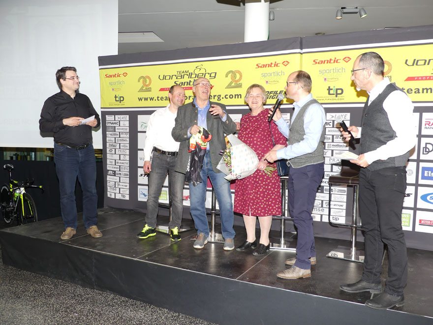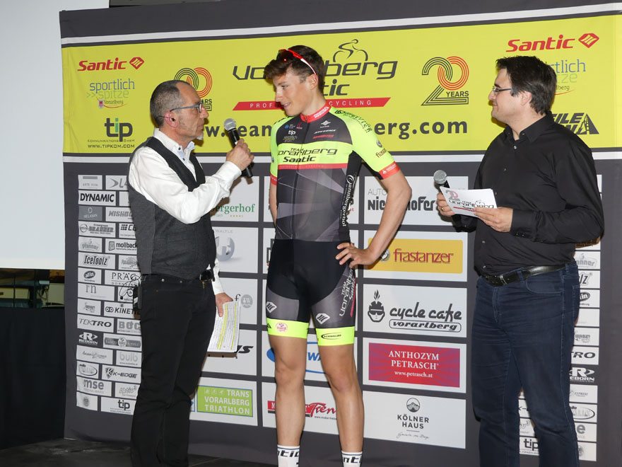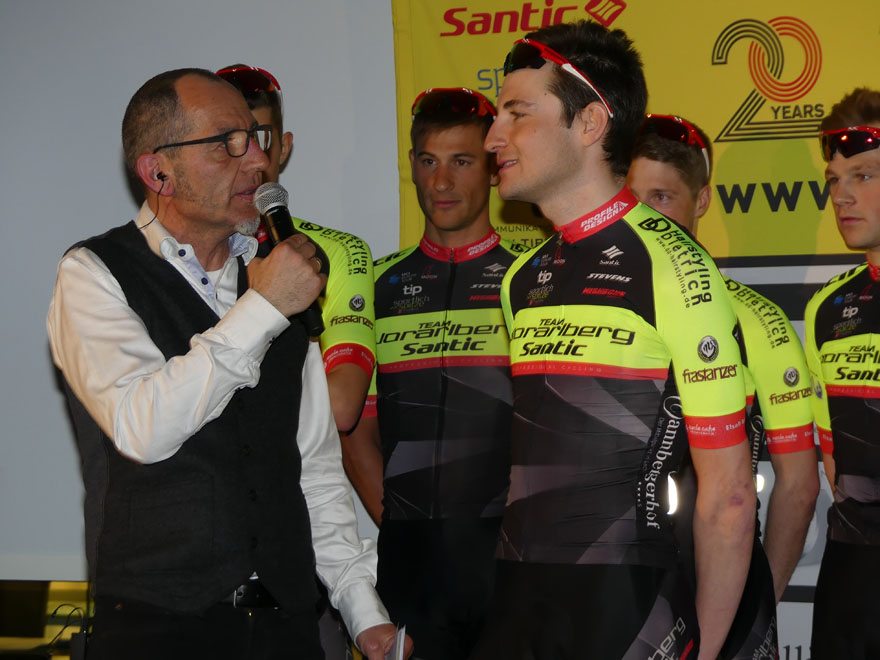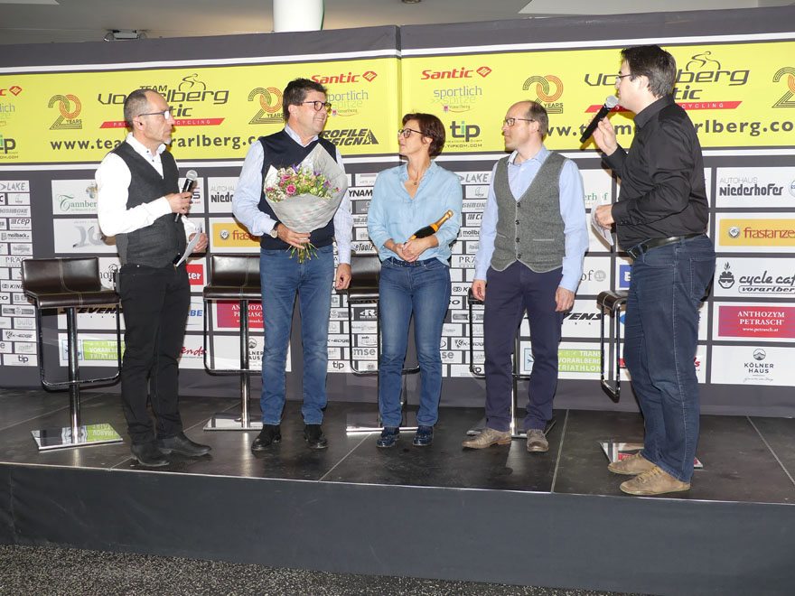 Bei der Team Vorstellung 2018 im Autohaus Volvo Niederhofer in Lauterach, bei dem das Rad Team auch „20 Jahre Team Vorarlberg” feierte, präsentierte das Team Vorarlberg Santic zwei neue Partner.