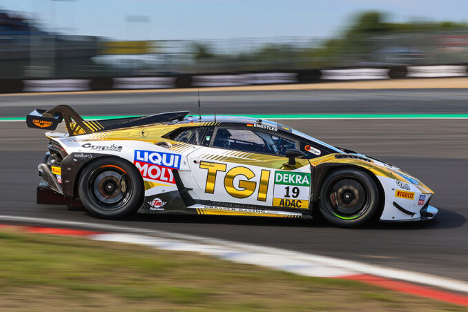 Im ersten Qualifying am Samstag demonstrierte Engstler, dass mit dem TGI Team Lamborghini by GRT auf dem Nürburgring zu rechnen sein würde. Der Allgäuer stellte die #19 auf die dritte Startposition – lediglich 0,057 Sekunden fehlten zur Pole Position. Am Start machte Engstler direkt eine weitere Position gut, zog sich allerdings eine kleine Beschädigung durch eine Berührung zu und fiel dadurch im Verlauf der 60 Rennminuten bis auf den siebten Rang zurück. Teamkollege Pepper erwischte einen super Start und war nach wenigen Runden bereits von Rang neun bis auf Platz fünf nach vorne gekommen. Mit einem sehenswerten Überholmanöver drückte sich Pepper in der letzten Schikane an seinem Konkurrenten vorbei und eroberte Rang vier.