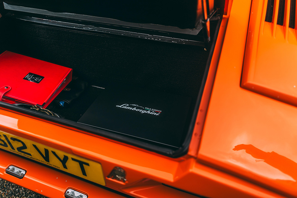Der Countach 25th Anniversary kam 1988 auf den Markt, um das 25-jährige Bestehen von Automobili Lamborghini zu feiern, und ist die Countach-Version mit der höchsten Auflage. Der in der Klasse H angetretene Countach verließ am 27. Februar 1990 das Werk und wurde am 27. März 1990 vom damaligen Händler Portman in London ausgeliefert. Er ist einer der wenigen produzierten Rechtslenker dieser Serie. Auch dieses Exemplar besticht durch seine spezielle Farbkombination aus orangem Exterieur (Arancio 1120106) und champagnerfarbener Innenausstattung. Vor allem die Außenlackierung macht ihn zu einem Unikat, da sein erster Besitzer auf der gleichen Farbe wie bei seinem ersten Countach, einem LP 400 in Orange, bestand, die für den Countach 25th Anniversary jedoch nicht angeboten wurde. So wurde der Lack eigens für den Kunden rekonstruiert und die VIN von seinem ersten Fahrzeug übernommen. Es gibt daher nur einen einzigen Countach 25th Anniversary in dieser Farbe. Das Fahrzeug hat eine sehr niedrige Laufleistung, wurde nie restauriert und kürzlich vom Polo Storico zertifiziert.