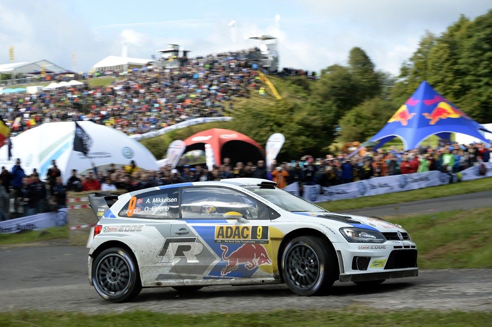 Vorentscheidung in der Rallye-WM – nach der Rallye Deutschland steht fest, dass der Rallye-Weltmeister 2014 ebenfalls Volkswagen fährt. Nur Sébastien Ogier (F), Jari-Matti Latvala (FIN) oder Andreas Mikkelsen (N) können den Fahrer-Titel bei den abschließenden vier Saison-Rallyes gewinnen. Das Werksteam aus Wolfsburg erlebte beim Heimspiel aber auch eine Enttäuschung. Während Andreas Mikkelsen/Ola Fløene (N/N) das erste Podiumsresultat von Volkswagen beim Heimspiel in der FIA Rallye-Weltmeisterschaft (WRC) markierten, verpasste die Mannschaft den Sieg in Deutschland im sprichwörtlich letzten Moment. In Führung liegend beendete ein Ausrutscher von Jari-Matti Latvala/Miikka Anttila (FIN/FIN) die Sieghoffnungen nur etwa 70 Kilometer vor dem Ziel. Die Rallye Deutschland bleibt damit die einzige Rallye im WM-Kalender, die Volkswagen bisher nicht gewonnen hat – damit ist auch die Rekord-Serie von zwölf Rallye-Siegen in Folge beendet. Dennoch freute sich die Mannschaft mit Andreas Mikkelsen/Ola Fløene, die bei extrem schwierigen äußeren Bedingungen Platz drei sicher nach Hause fuhren.