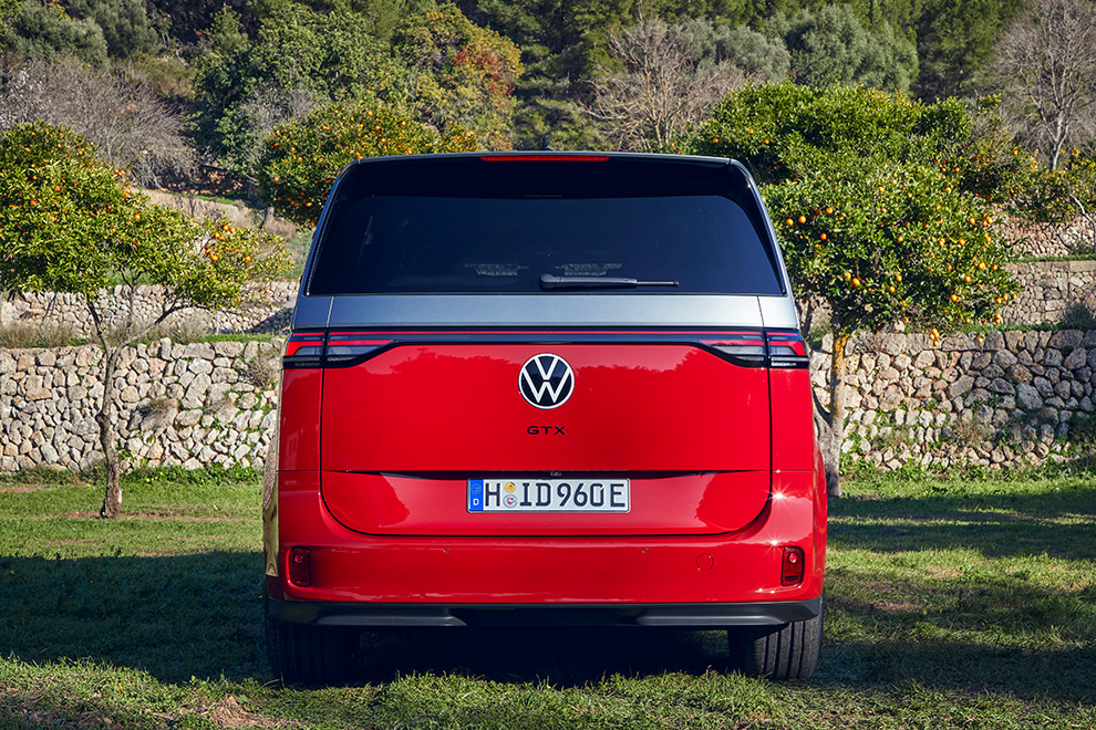 Das Gepäckraumvolumen des ID. Buzz GTX (Normalradstand) ist als Fünfsitzer zwischen 1.121 Liter (Beladung bis Oberkante der Rücksitzlehnen) und 2.123 Liter groß (Rücksitzbank umgeklappt, Beladung bis Oberkante vordere Sitzlehnen). Nochmals geräumiger ist der verlängerte ID. Buzz GTX: Bei der Beladung bis zur Oberkante der Rücklehnen der zweiten Sitzreihe ergibt sich ein Volumen von 1.340 Litern. Wird der große ID. Buzz GTX bis hinter die erste Sitzreihe beladen, steigt das Volumen auf 2.469 Liter. Selbst mit sieben Personen besetzt ergibt sich hinter der dritten Sitzreihe des ID. Buzz noch ein Volumen von 306 Litern. Je nach Sitzkonfiguration können beide ID. Buzz GTX mit einem langen oder kurzen Multiflex-Board (inklusive zwei Faltboxen) ausgestattet werden. Durch das Multiflex-Board entsteht eine zweite Ladeebene sowie – bei umgeklappten Rücksitzen – eine ebene Ladefläche.