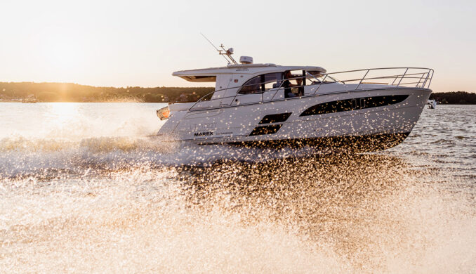 Das beste Beispiel eines eleganten Familienbootes, so Walter Schnur, sei die im Januar 2022 mit dem Best of Boats Award prämierte Marex 330 Scandinavia mit einer Länge von 9,99 und einer Breite von 3,40 Metern. Der Vollgleiter 330 ist die kleinere Version des zwei Meter größeren Flaggschiffs Marex 375 und hat von ihm viele Details, wie die große Sitzecke innen und das bis zu zehn Personen Platz bietende Cockpit übernommen. Die 330 Scandinavia wird auf Wunsch mit Einzel- und Doppelmotorisierung von Volvo Penta angeboten und mit Wellen- oder Z-Antrieben geliefert. Das komplett mit dem Verdeck zu schließende Cockpit verlängert nicht nur die Sommersaison, sondern erleichtert auch das Übernachten im Hafen. Unter Deck gibt es reichlich Platz in Stehhöhe mit zwei Kabinen, Badezimmer und großer Küche. Selbst die kleinste Marex, die 310 Sun Cruiser, bietet diese Annehmlichkeiten und beeindruckt durch enormen Platz mit der Sitzgruppe im Cockpit oder dank großer Fenster mit viel Licht unter Deck.